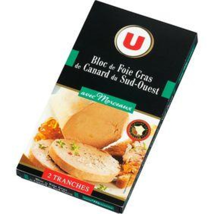 Bloc de foie gras de canard du Sud Ouest 30% de morceaux U, 2 tranches, 80g