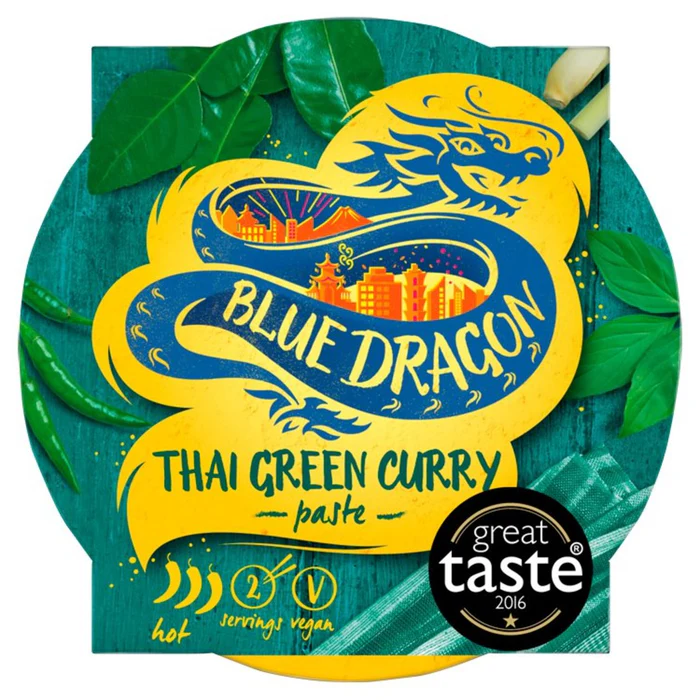 Thai Green Curry is a light, spicy and fragrant dish that is native to Thailand. The secret to great Thai curries is the freshness and balance of Thai ingredients that are ground into paste. At Blue Dragon, we grind our paste in Thailand to capture all the rich flavors. The plastic pot and cardboard sleeves used for our Blue Dragon Paste Pots are 100% recyclable. The film lids are made from laminated film: this type of packaging is not yet recyclable, but we are working hard with our packaging suppliers to change this. We are signatories of the UK Plastic Pact and are committed to ensuring all of our packaging is 100% recyclable by 2025. Great Taste Award 2020, Made in Thailand, Chili rating – hot – 3, Suitable for vegetarians and vegans.