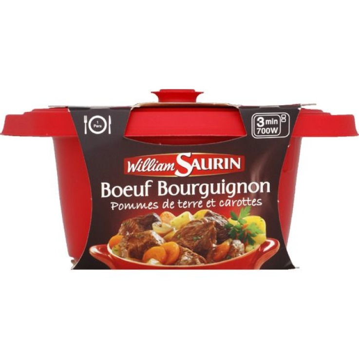 Pays de fabrication : FRANCE De généreux morceaux de boeuf cuisinés avec des pommes de terre, des carottes et des oignons, le tout mijoté dans une savoureuse sauce au vin rouge.