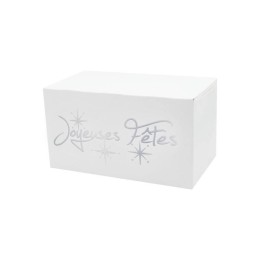 Boîte à bûche “Joyeuses Fêtes” blanche 17 x 11 x 11 cm – par 25