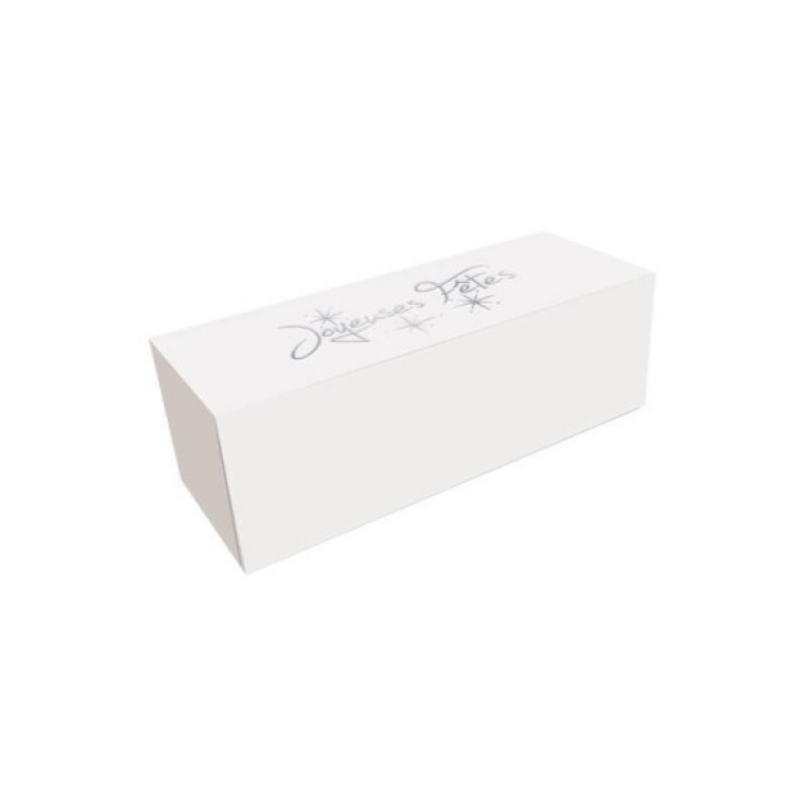 Boîte à bûche “Joyeuses Fêtes” blanche 40 x 11 x 11 cm – par 25