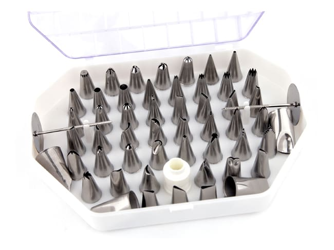 Boîte de 52 douilles en acier inoxydable pour décor fin.