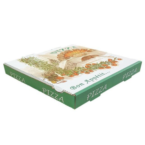 - Carton micro-cannelure épais qui assure une excellente protection contre les graisses de pizza