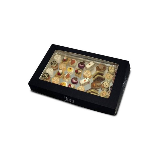 Cette boîte traiteur en carton noire de dimension 46 x 30 x 8 cm est recommandée pour protéger vos gâteaux pendant la phase de transport. Comme toute notre gamme d’emballage cette boîte traiteur est apte au contact alimentaire direct.