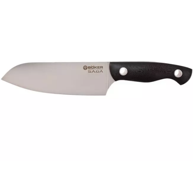 Ce santoku Böker Saga est parfait pour couper, écraser et ramasser divers ingrédients. C’est vraiment un couteau très multifonctionnel ! En raison des deux trous caractéristiques de la poignée, ce santoku est également un régal pour les yeux.