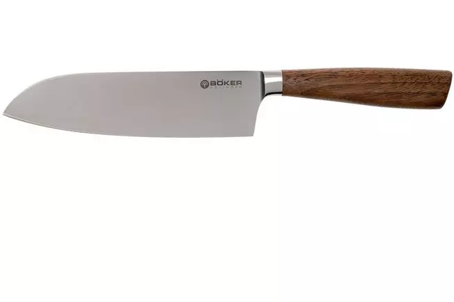 Comme le couteau du chef, ce santoku Böker Core est un vĂ©ritable multitalent. Que vous souhaitiez couper de la viande, du poisson, des lĂ©gumes ou des herbes en tranches, en cubes ou les hacher finement : avec ce santoku ce sera un jeu d’enfant.