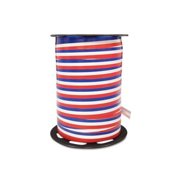 Ce bolduc brillant bleu blanc rouge aussi appelé ruban plastique est l’accessoire idéal pour embellir votre emballage alimentaire.