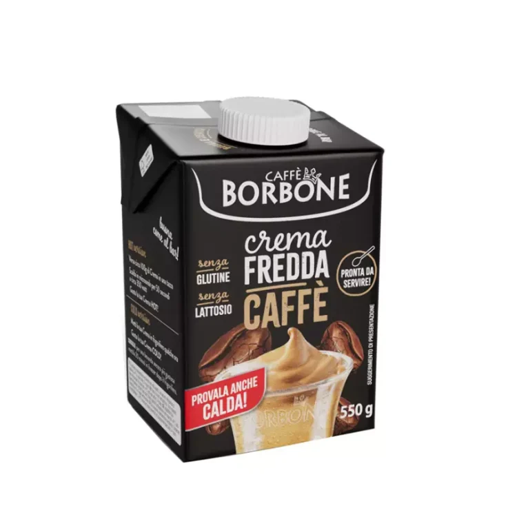 Borbone coffee cream, with its thick and creamy consistency, is perfect for a fresh and tasty break! Try it also in its hot version, ideal to enjoy in winter in front of the fireplace. In addition, it is gluten- and lactose-free, therefore also suitable for those with special dietary requirements. Borbone coffee cream is the perfect way to enjoy a sweet coffee-flavoured break at any time of day. Also ideal to share with whoever you want! With each 550 g brik, in fact, you get about 7 portions of cold cream immediately ready to serve.