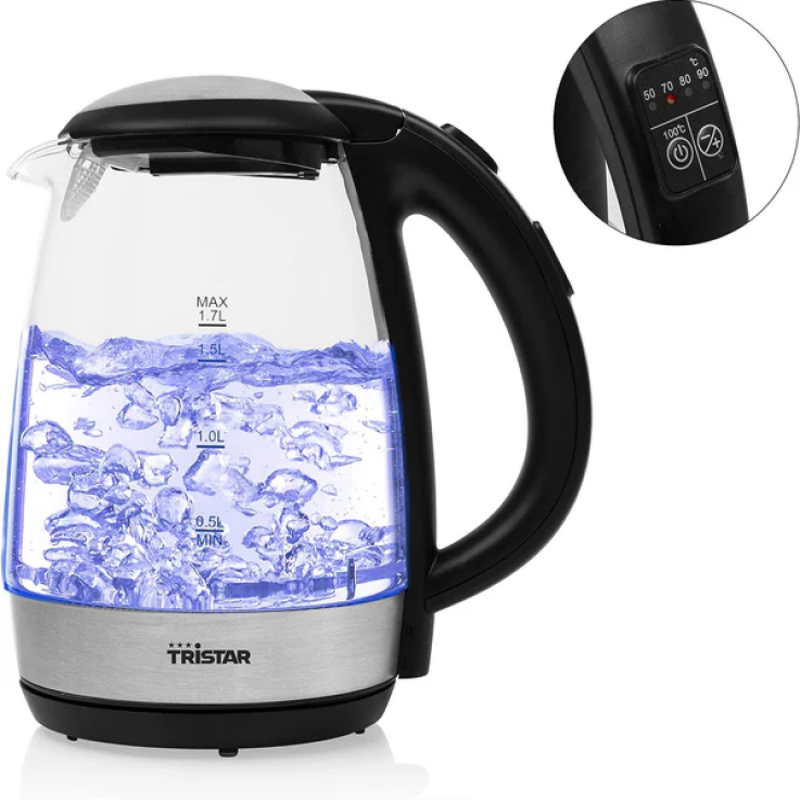 bouilloire électrique de 1,7L sans fil avec LED 2200W gris noir Tristar