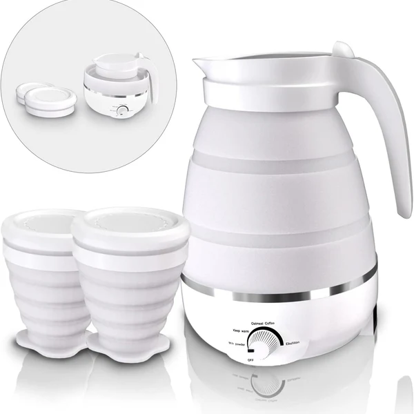 Bouilloire électrique pliable de 0,6L et 2 tasses pliables blanc Vendos85