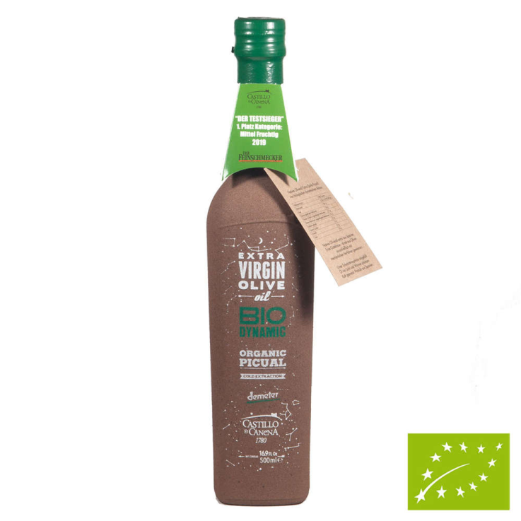 Bouteille en verre d’huile d’olive extra vierge biodynamique Demeter Picual 500ml – Castillo de Canena