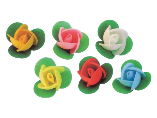 Boîte de 50 boutons de roses assortis en feuille azyme.