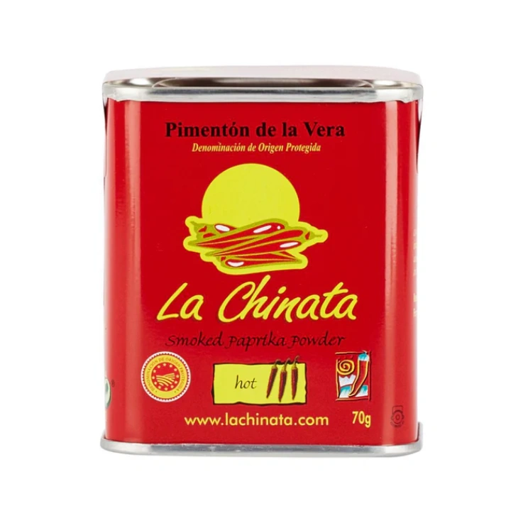 Made from hot red Jaranda peppers which are ground in the D.O.P. region of Extremadura and then smoked over oak fires creating the unmistakeable spicy smoky flavor. A traditional seasoning in Spanish dishes from Paella to bean stews and casseroles. You could also use it as a garnish to houmus, pan fried meat or fish or even gently toasted Marcona almonds. Chili rating – hot – 3, 100% smoked paprika, Gluten free.