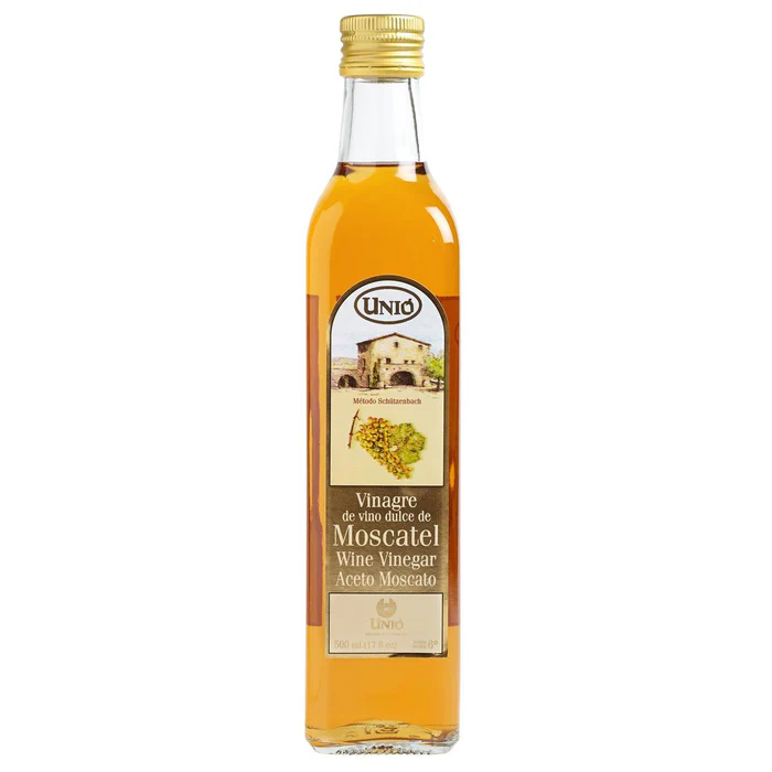 A delightfully floral vinegar that is exceptional is salads. Made with locally grown Moscatel grapes in Tarragona – one Spainās premier wine regions. This aromatic white wine vinegar is enriched with Moscatel grape juice. This elegant cooking ingredient is a Great Taste Award winner. If you are a pickle or chutney maker, try using Unió Moscatel vinegar.