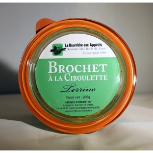 INGREDIENTS: Brochet (50%), crème fraîche épaisse, œuf, farine de blélait entier, épices grilléesbeurre, échalote, ciboulette (2%), sel, piment, poivre blanc.
