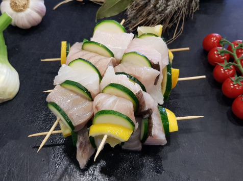 Idéales pour le barbecue, Les brochettes sont composées de cabillaud, lieu-noir, rondelle de courgette et citron. Notre engagement de pêche durable privilégie la vente d’espèce abondante, le respect des zones et technique de pêche française, la sélection d’élevage aux bonnes pratiques et la lutte contre la pêche illégale. Nous avons choisi de travailler avec les criées pour des raisons de norme sanitaire, d’hygiène et de traçabilité.
