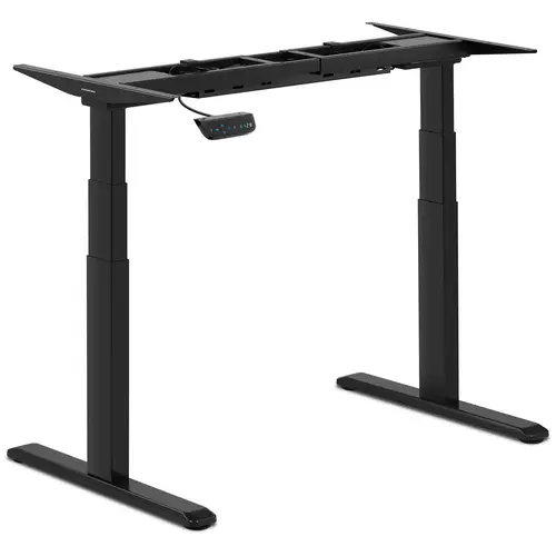 Ce piètement de bureau assis-debout adopte une hauteur de 620 – 1 280 mm et une largeur de 1 000 – 1 700 mm. La hauteur de ses pieds à trois sections se modifie de façon silencieuse, fluide et rapide (38 mm/s) au moyen de 2 moteurs cumulant une puissance de 200 W. Un panneau de commande permet de contrôler la montée et la descente. Grâce à une fonction de sauvegarde, il est possible d’enregistrer et de sélectionner trois hauteurs sur simple pression d’un bouton. Le piètement de table réglable dispose en outre d’une minuterie qui vibre pour rappeler l’heure de la pause ou le moment de changer de position.