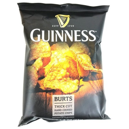 Fine British chips from Burts meets Guinness beer in this ultra unique, ultra crispy, and ultra crunchy bag of goodness! Made without artificial dyes or hydrogenated fats, these chips are made with the finest ingredients to give you a premium taste no matter where you munch on them!