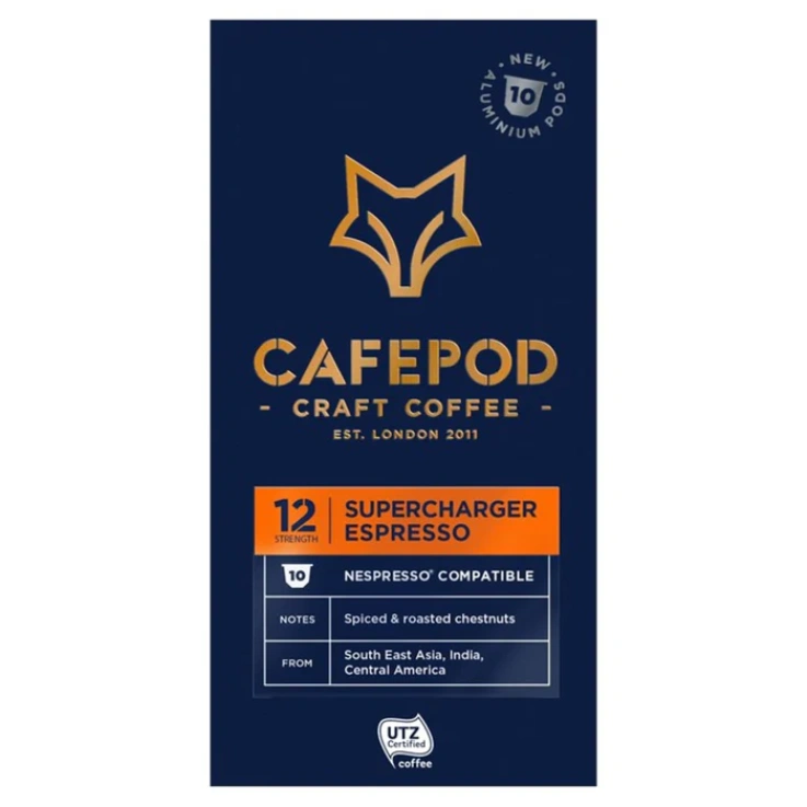 CafePod Supercharger Espresso Nespresso Compatible Aluminium Coffee Pods 10 per pack