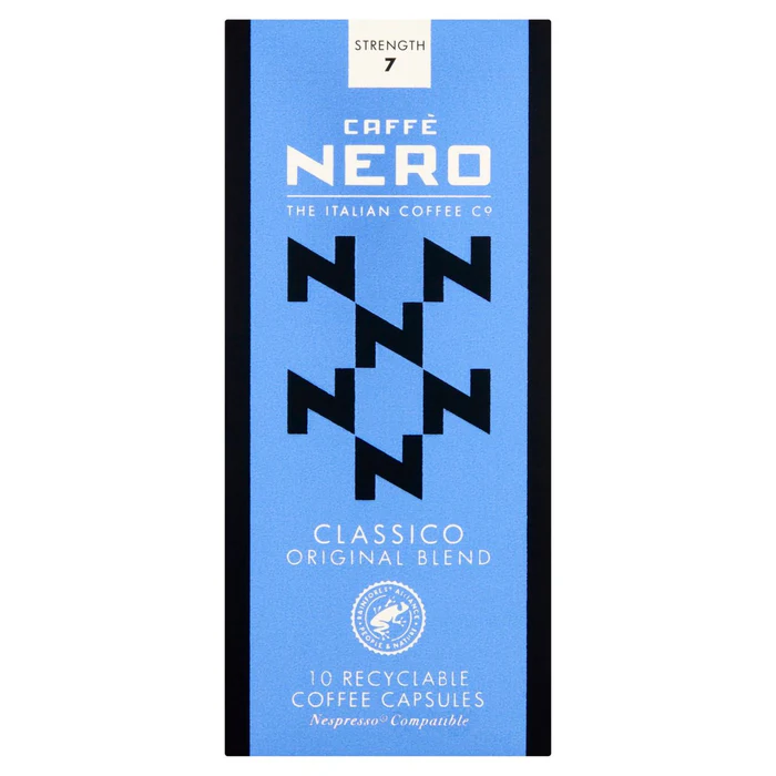 Original Blend: Our Classico Original Blend is the same rich, smooth, full bodied blend we serve in every Caffè Nero. A medium Italian roast sweet and balanced with notes of Dark chocolate, Hazelnuts & Caramel. Strength – 7, Nespresso Compatible, Master Coffee Roasters.
