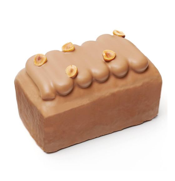Biscuit à la noisette, praliné noisette fondant et croustillant, crème au praliné noisette, noisettes caramélisées.