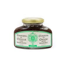 Ingredients: onions (210g for 100g of final product), sugar, Balsamic Vinegar of Modena (wine vinegar, cooked grape must) (15%).