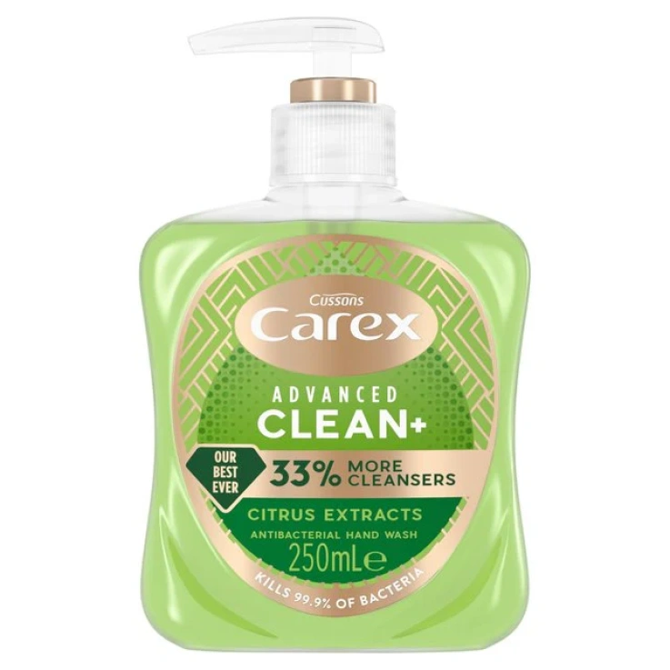 Carex Advanced Clean Antibacterial Hand Wash with Citrus Extracts. Our Advanced Clean formulation has been expertly developed with 33% more cleansers* to help remove dirt and germs and leave your hands feeling clean and fresh. *Compared to cleaning system for Carex Original Hand Wash.