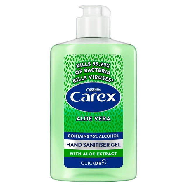 Protect your hands with Carex Aloe Vera Anti Bacterial Hand Sanitiser Gel, available in 300ml travel sized bottles to help keep the whole family clean and protected. Made with 70 Percent alcohol, the refreshing aloe vera hand sanitiser kills germs and is proven to kill 99.99 Percent of bacteria and kills viruses (active against enveloped viruses such as Coronaviruses). With health experts including the NHS, Public Health England and World Health Organisation all agreeing that to be effective, a hand sanitiser needs at least 60 Percent alcohol content, you can be sure that using Carex Aloe Vera Hand Sanitiser which contains 70 Percent alcohol, your hands really are protected.
