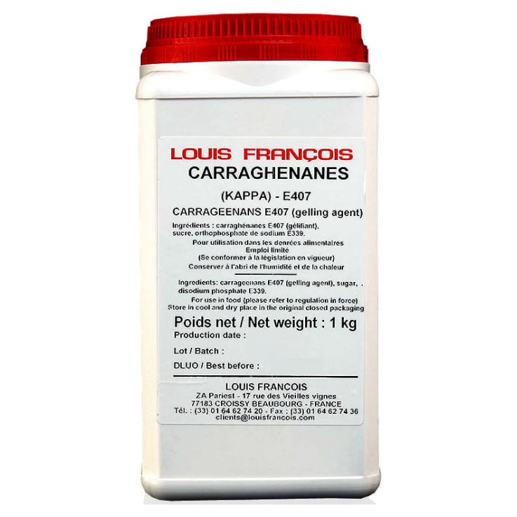 Carraghénanes (E407) est obtenu à partir d’algues marines rouges de la classe des Rhodophyceae par extraction aqueuse.