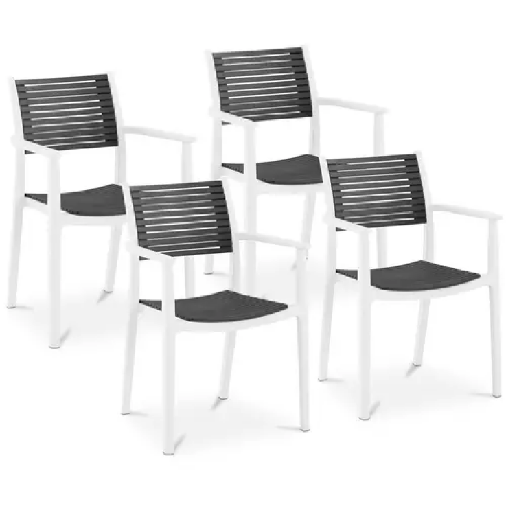 Chaise – Lot de 4 – Royal Catering – 150 kg max. – Dossier avec fentes d’aĆ©ration – Accoudoirs – Gris