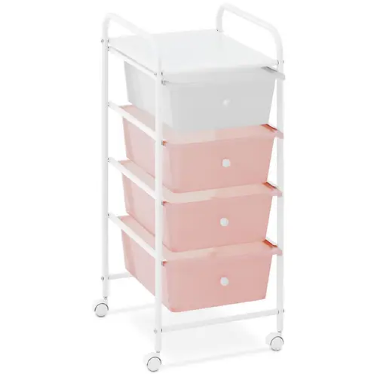 Chariot coiffure – 4 tiroirs – rose/blanc