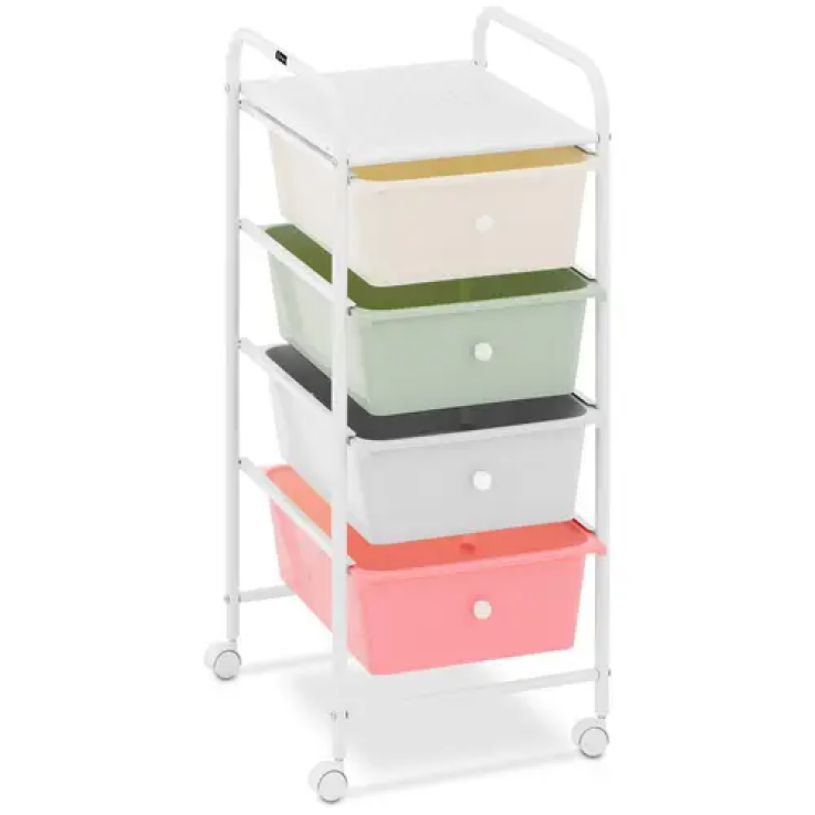 Chariot coiffure – 4 tiroirs – vert/gris/rose/crème