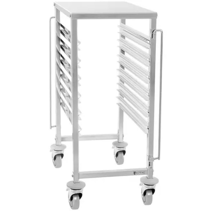 Le chariot à plateaux RCTW 6 GN 1/1 de Royal Catering a été conçu pour le domaine de la restauration et peut être utilisé de manière universelle dans beaucoup de situations différentes. Que ce soit pour un cuisine collective, une cantine, un hôpital ou pour une boulangerie, avec le chariot à plateaux de desserte de Royal Catering, vous disposez d’un moyen sûr et efficace pour transporter votre vaisselle ou vos plateaux et ce, pour un rapport qualité-prix imbattable.