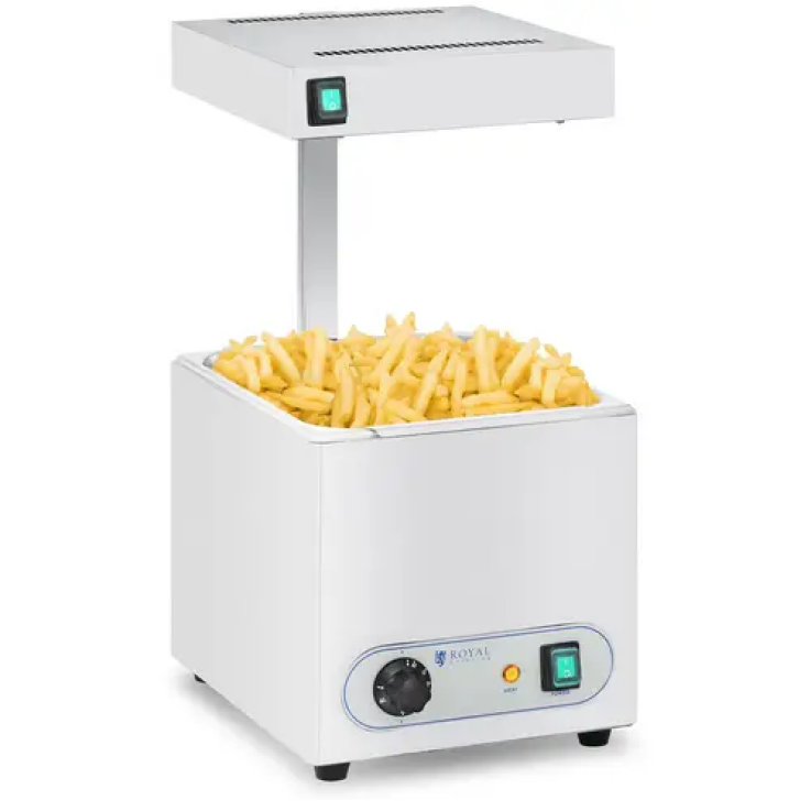 Avec ce chauffe-frites, vous pouvez, sur une longue durée, maintenir au chaud des frites et d’autres aliments frits, tels que des snacks, le tout sans courir le risque de faire brûler quoique ce soit. L’appareil qui maintient au chaud dispose d’une molette grâce à laquelle vous pouvez programmer de manière exacte n’importe quelle température entre 30 et 90 °C. Cette large fourchette vous permet de choisir avec précision la température dont vous avez besoin pour réchauffer vos aliments.