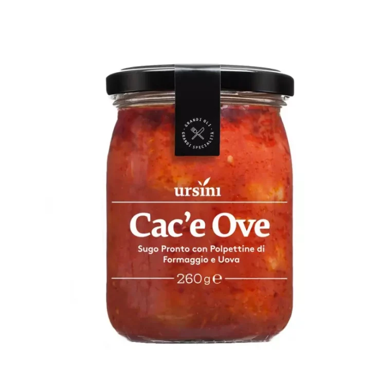Pallotte abruzzesi cac’ e ove with red Ursini sauce are one of the region’s most famous dishes. The invention of this meal originates from the peasant tradition when, in times of war, meat was scarce and meatballs were made with very simple ingredients: bread, cheese (cacio) and eggs. A single dish, hot and quick but very substantial. It can also be served in small portions as an appetiser, or as a main dish. After opening, we recommend storing in the fridge and consuming within a couple of days.