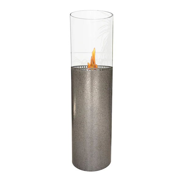 La cheminée ILTIA a un style similaire à une torche de sol. Elle a un corp cylindrique et allongé en acier gris avec, un emboutissage granulé et un écran arrondi en verre trempé qui encadre une belle flamme, capable d’atteindre jusqu’à 2000W de puissance calorifique.