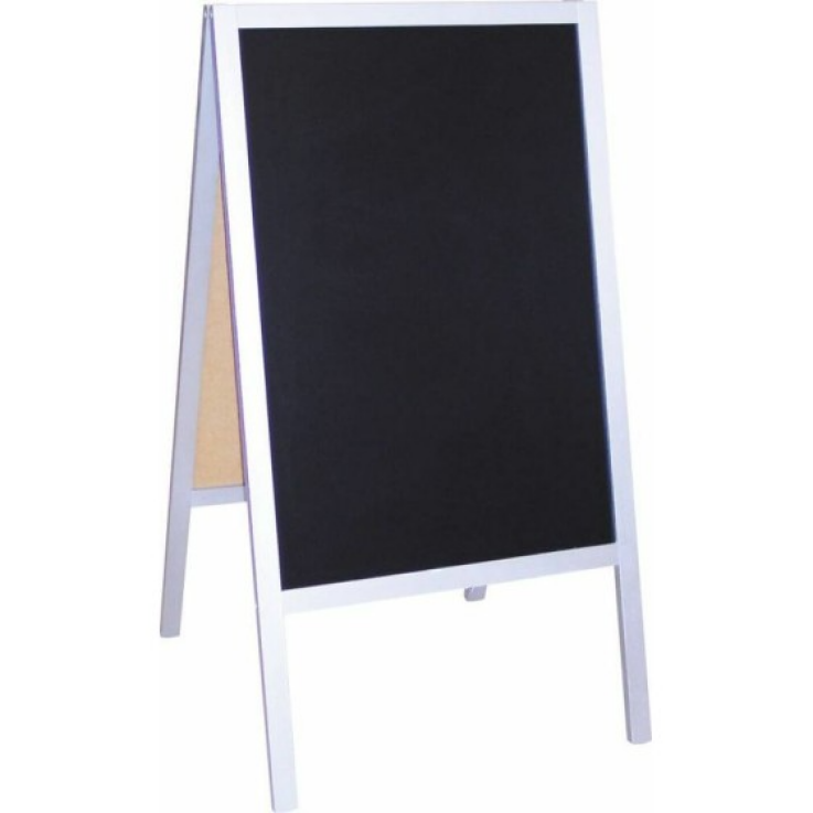 Chevalet de trottoir “Aluminium” 65 x 66 x 115 cm pour l’affichage des menus, promotions ou messages spéciaux. Grâce à sa fabrication en bois et ardoise noire de 6 mm d’épaisseur, ce chevalet offre une élégance et une solidité idéale pour l’affichage de vos informations en intérieur comme en extérieur.1