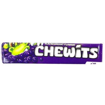 Chewits are delicious fruit flavored chew-able candies that come in a variety of your favorite fruit flavors, this one being blackcurrant flavor.
