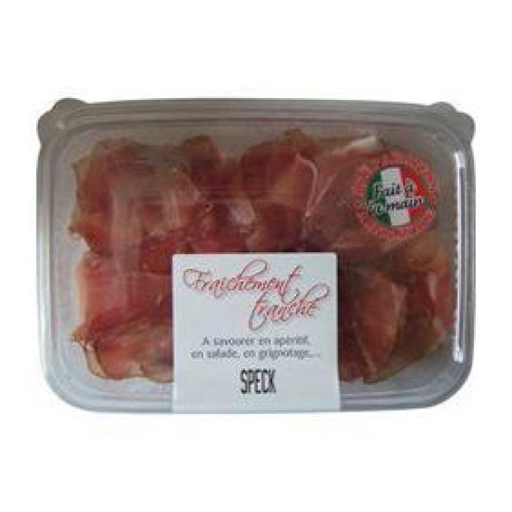 Chiffonnade de Speck Presto INGREDIENTS: Jambon de porc, sel, dextrose, aromes, epices, conservateurs: nitrite de sodium, nitrate de sodium.