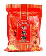 The candies are individually wrapped in red with gold lettering – the Chinese lucky colours.