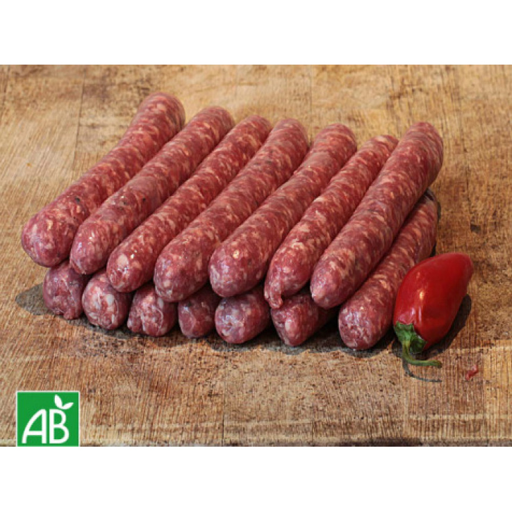 Lot de 2x500g de chipolatas de bœuf faites maison composition: bœuf 80%– porc 20% sel – poivre sans conservateur – ni colorant conditionné en poche sous vide avec une dlc de 10 à 15 jours conseil de dégustation: cuire au gril à 180°, au barbecue, à la plancha ou dans une poêle bien chaude. Les jeunes et les moins jeunes les adorent avec des frites. Congélation possible ? Oui (décongeler au réfrigérateur)