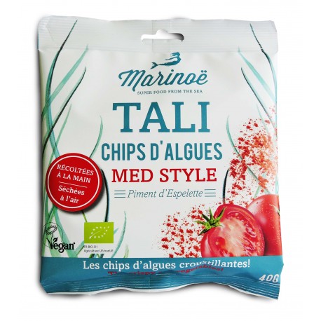 Dégustez une version saine et délicieusement croustillante de la chips, à base d’algues récoltées à la main puis séchées à l’air mais surtout 100% BIO et pleine de saveurs ! Déshydratation douce, riche en minéraux, légèrement salée et assaisonnée à la tomate et au piment d’Espelette.