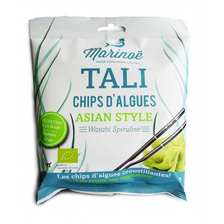 Dégustez une version saine et délicieusement croustillante de la chips, à base d’algues récoltées à la main puis séchées à l’air mais surtout 100% bio et pleine de saveurs ! Déshydratation douce, riche en minéraux, légèrement salée et assaisonnée au wasabi et à la spiruline.