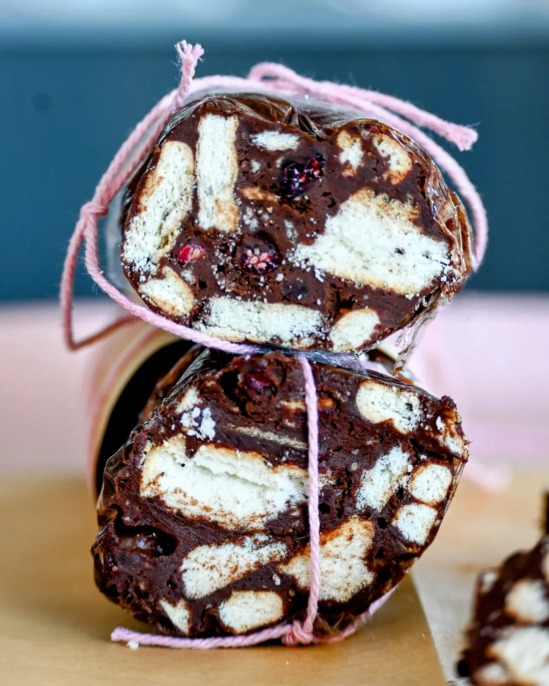 This chocolate salami, is a beloved treat that spans so many cultures with so many variations. Enjoy a slice of nostalgia with this recipe. Wrap it up in paper and gift it to your friends!
