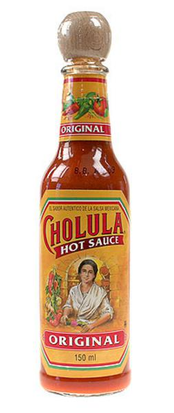 Cholula Original Hot Sauce is a strong spicy sauce that is quite hot. It is made with a vinegar base and is quite runny in consistency. The spout is quite narrow, like that of a Tabasco bottle, to allow controlled pouring.