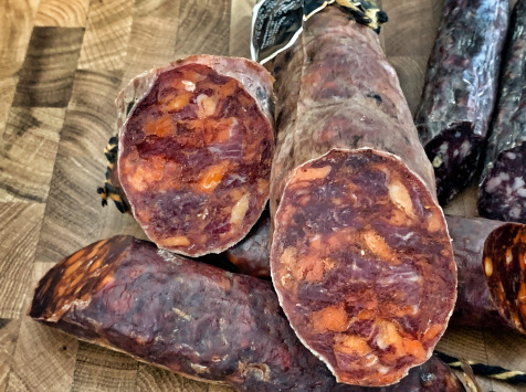 Les cochons ibériques de qualité “Bellota” sont élevés pendant près deux ans d’élevage, et vivent comme des princes en plein air. Notre chorizo est lui affiné pendant plus de 6 mois.