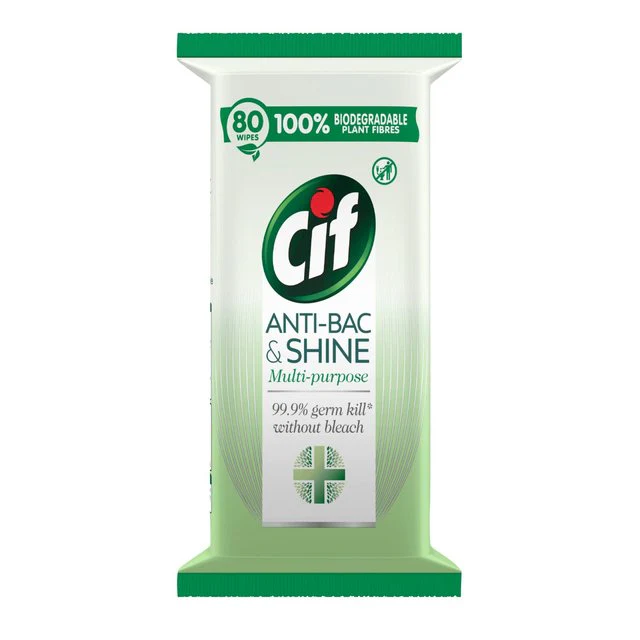 Want to remove both the ugly dirt you see, and kill 99.9% of bacteria you don’t? Try Cif Antibac & Shine Multipurpose Disinfectant wipes which clean & disinfect your home, eliminating 99.9% of bacteria and cleaning at the same time. Cif Antibac & Shine multipurpose wipes are safe for cleaning & disinfecting virtually all surfaces** and are tough on dirt & scum found in the home: from sinks to stainless steel, cookers to bins, toilets to tables, and plenty more in-between.