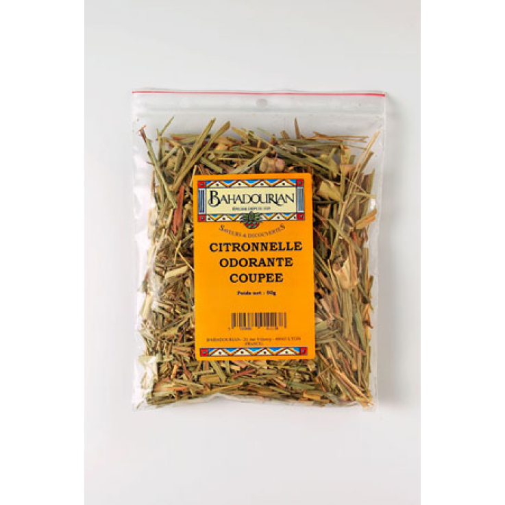 • Ingrédients : Citronnelle Odorante Coupée. Conditionné dans un atelier qui utilise: CÉLERI, SÉSAME, NOISETTE, PISTACHE, GRAINES DE MOUTARDES, GLUTEN, SULFITES, OEUFS, SOJA, LAIT.