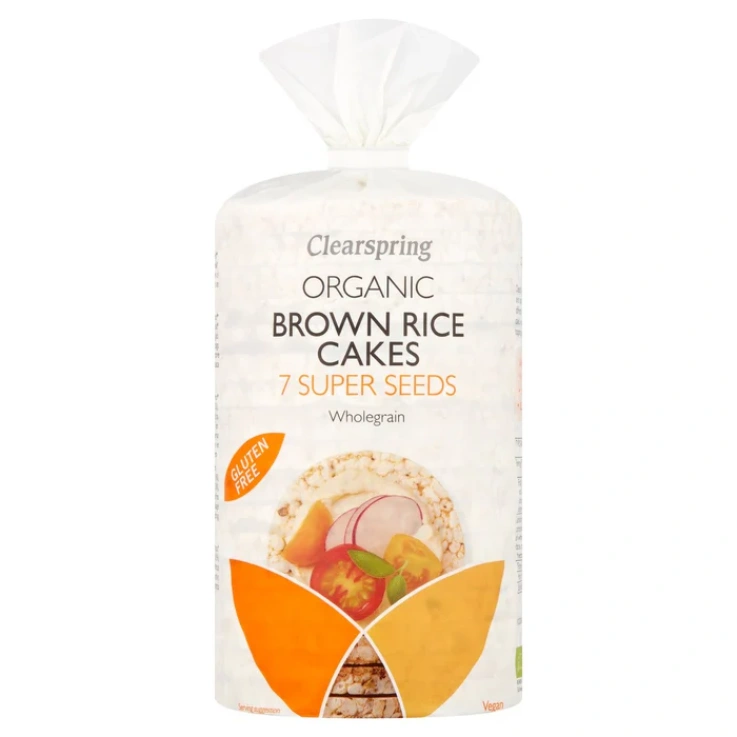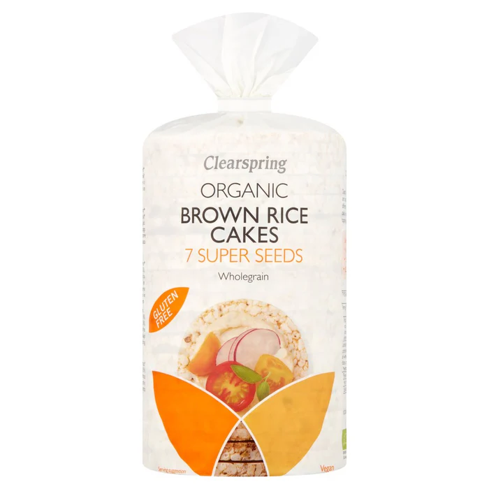 Clearspring’s organic brown rice cakes are exceptionally crispy and satisfying, made with puffed wholegrain rice and seven different kinds of seeds. Gluten free and only 28 calories per cake, enjoy as a light meal with your favorite spread and toppings, or as a delicious wholesome snack. Organic, Source of fiber, Low saturated fat, 28 calories per cake, Gluten Free, No artificial additives, Suitable for vegans. Suitable for Vegetarians.