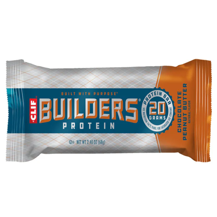 Clif Builders Chocolate Peanut Butter Protein Bar – the great-tasting protein bar that makes every ingredient count – so you can get the most out of your workout. 20g protein bar, High in protein, Low-glycemic-index foods digest slowly for prolonged levels of energy, we do not source genetically modified ingredients, Kosher – D